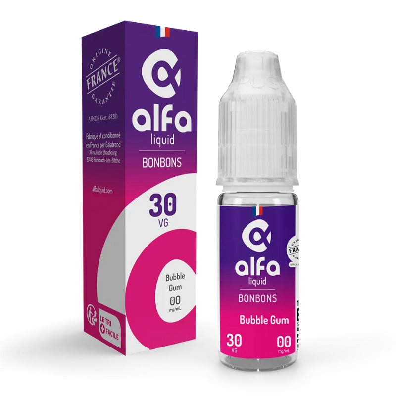 L'e-liquide Bubble gum d'Alfaliquid témoigne de la symbiose des arômes de tutti-frutti, de bubble-gum et d'orange.